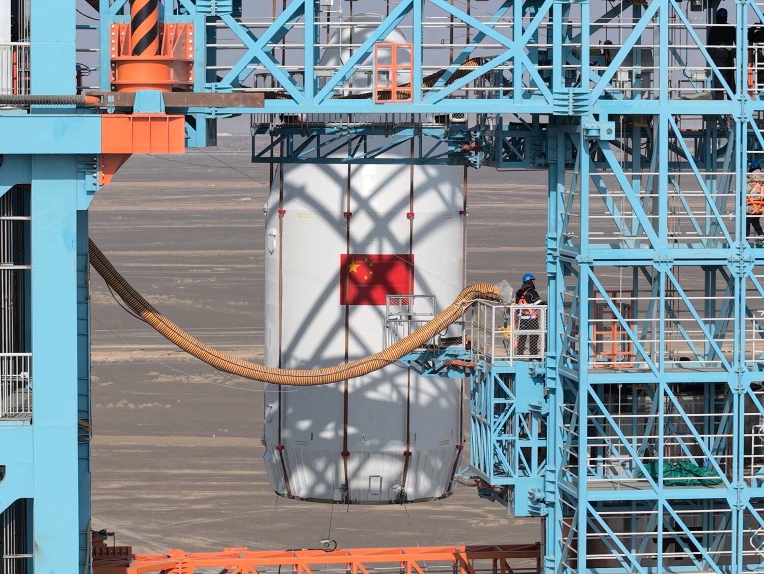 Интересно, что установку головного обтекателя провели уже после установки «Чжуцюэ-3» на стартовую площадку.