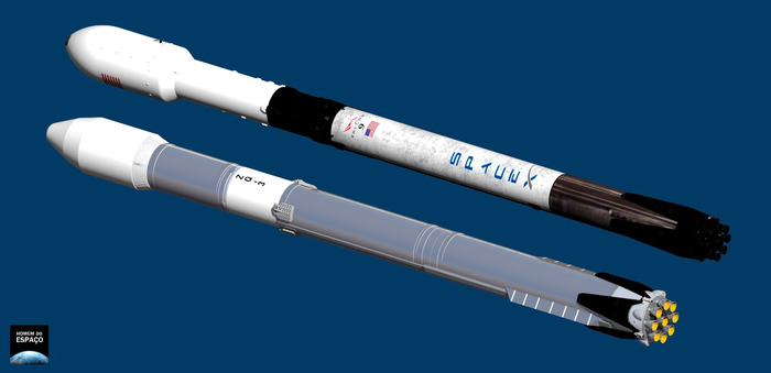 Сравнение Falcon 9 (сверху) и «Чжуцюэ-3». Homem do Espaço.