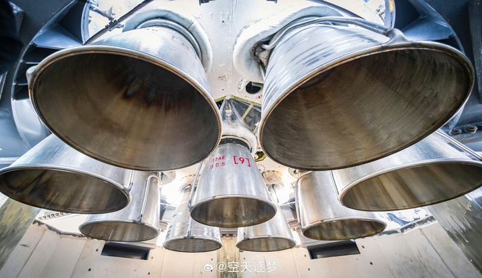 Девять ЖРД Tianque-12A на первой ступени РН «Чжуцюэ-3». Credit: LandSpace/CGTN.